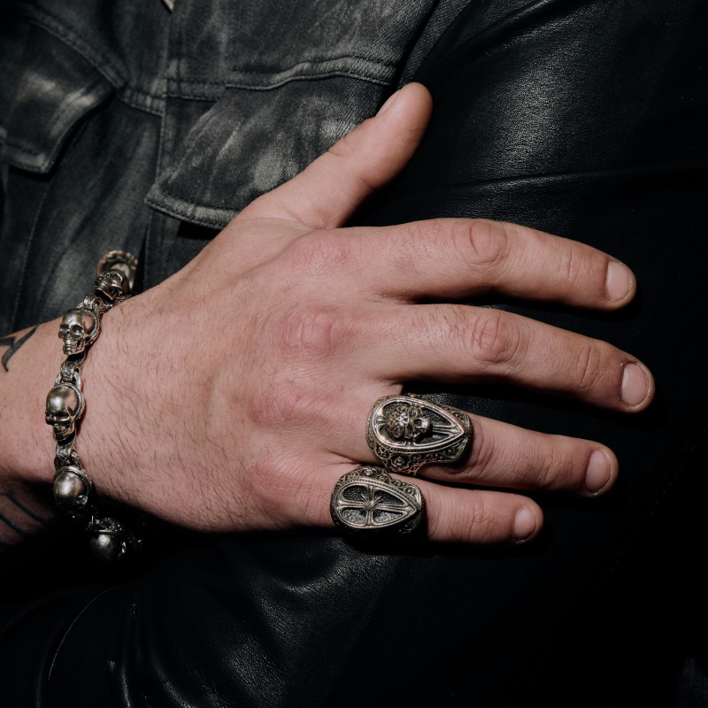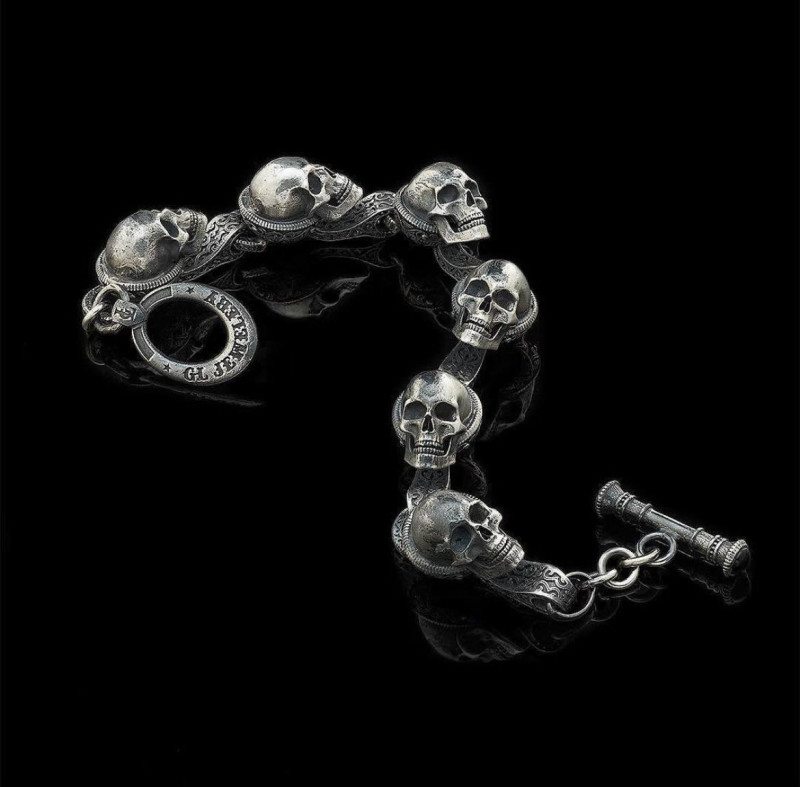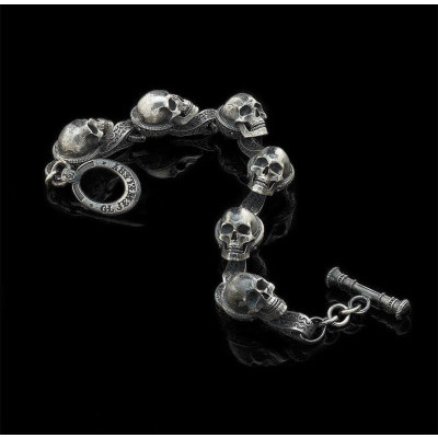 Мужской серебряный браслет с черепами